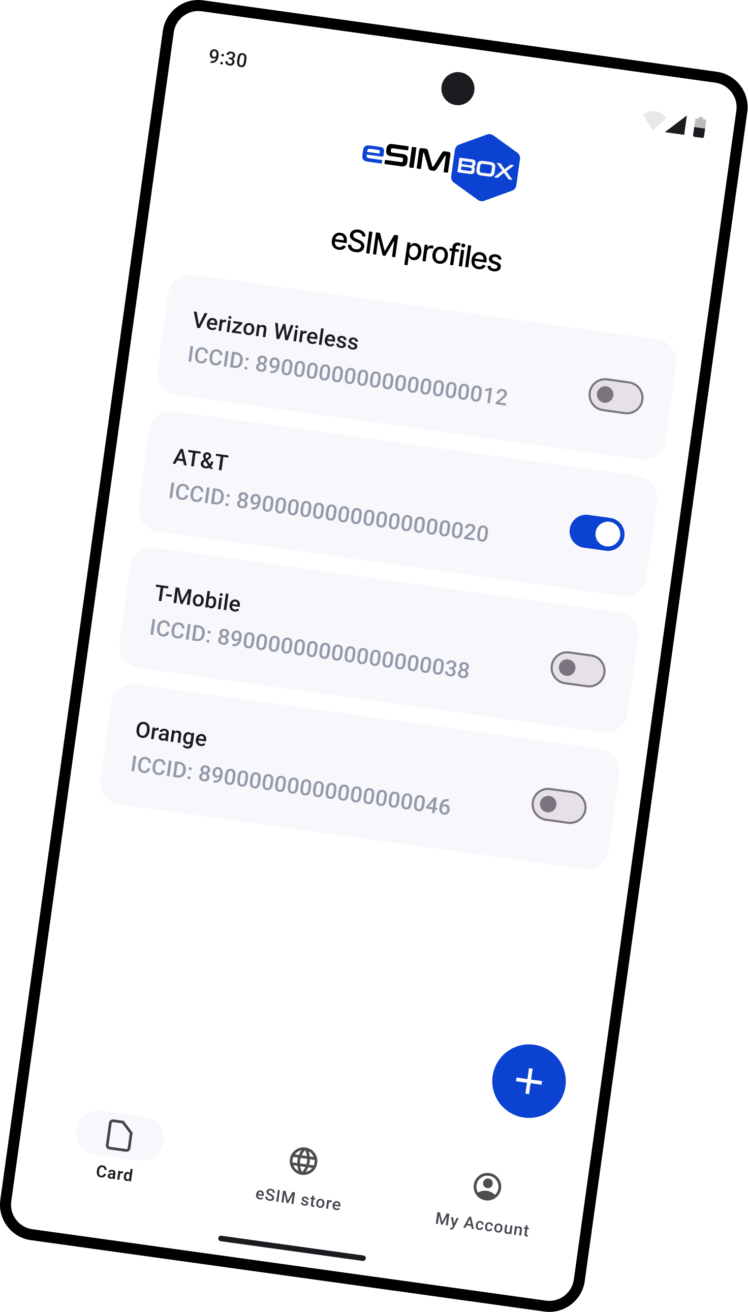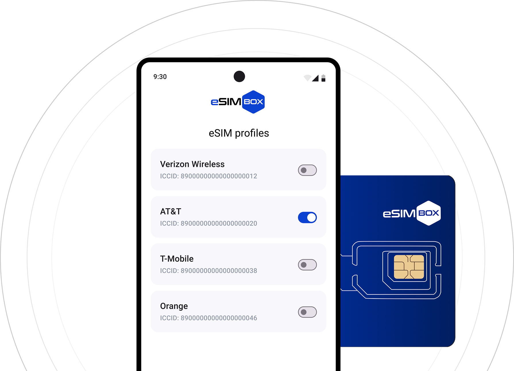 The eSIM.box card is a special SIM card that enables your mobile device to work with eSIM technology.